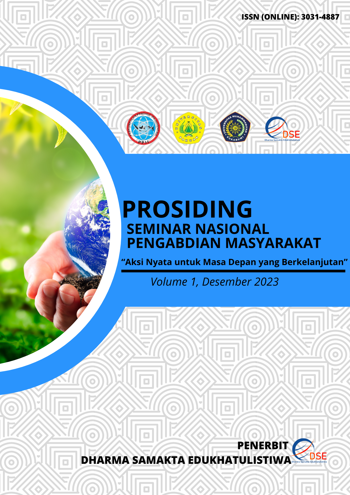 Prosiding Seminar Nasional Pengabdian Masyarakat adalah Media Publikasi karya ilmiah hasil-hasil pengabdian masyarakat dalam berbagai bidang yang telah dipresentasikan pada Seminar Pengabdian Masyarakat baik yang diselenggarakan oleh Dharma Samakta Edukhatulistiwa (DSE) ataupun pihak luar yang bekerja sama dengan DSE. PSNPM ini dipublikasikan pertama kali pada Tahun 2023 dengan eISSN 3031-4887 yang di kelola dan di publikasikan oleh Dharma Samakta Edukhatulistiwa (DSE). Semua artikel diperiksa plagiasinya dengan perangkat lunak anti plagiarisme. Jurnal ini terindeks di Google Scholar, dan Dimension. Terbit sekali dalam setahun.